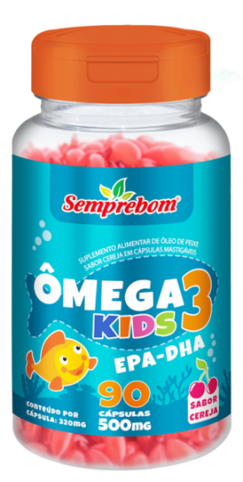 O Ômega 3 é um suplemento alimentar recomendado em todas as fases da vida por isso agora temos o Ômega Kids sabor cereja com cápsulas mastigáveis voltada para o publico infantil apresentando inúmeros benefícios como: auxiliar no desenvolvimento do sistema nervoso, da retina e do cérebro podendo contribuir na melhora da performance intelectual e, além disso, contribui para melhora dos efeitos cognitivos e saúde cardiovascular.